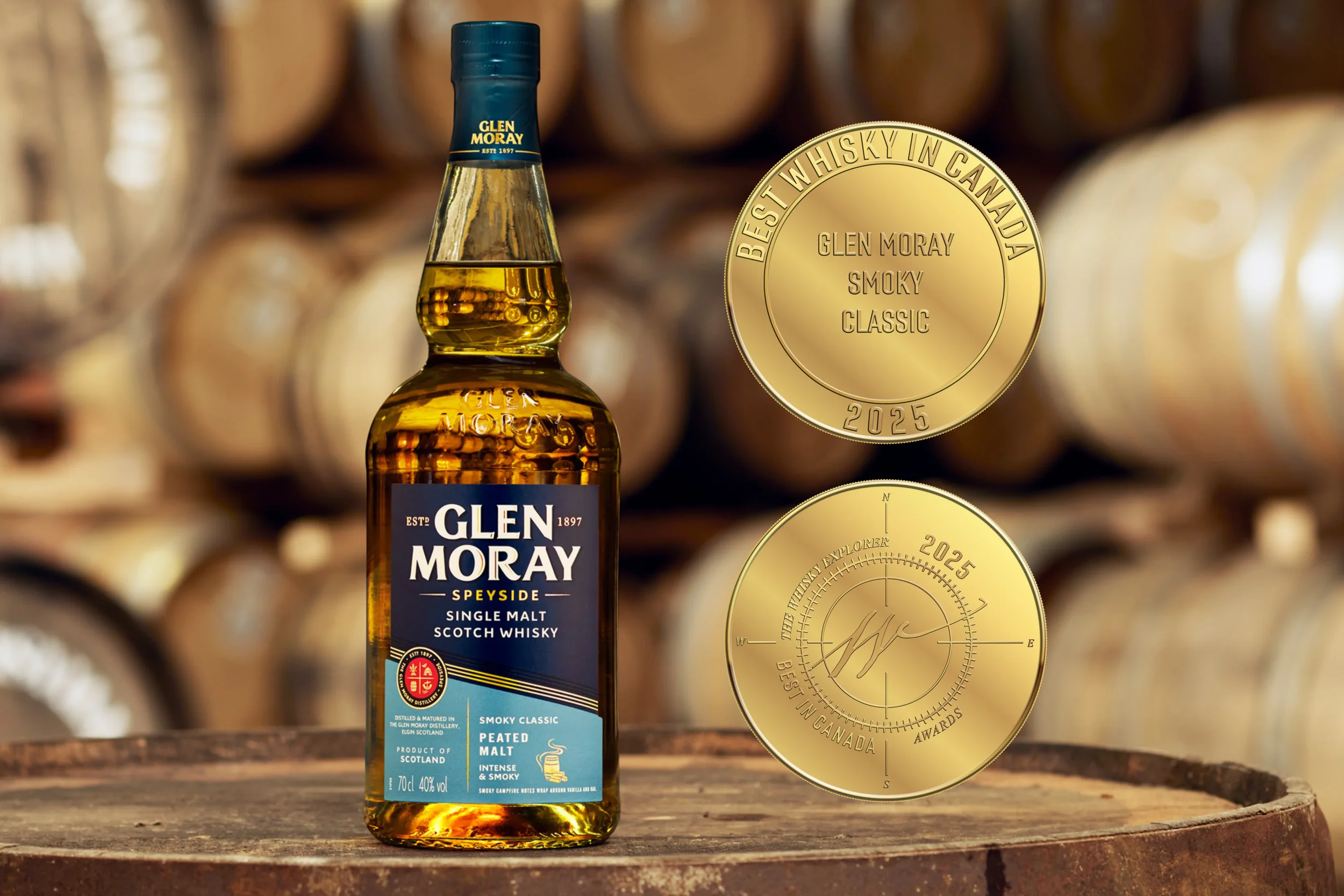 Glen Moray Smoky Classic was awarded Best Whisky in Canada at the 2025 Whisky Explorer Awards following blind evaluation by the judging panel.